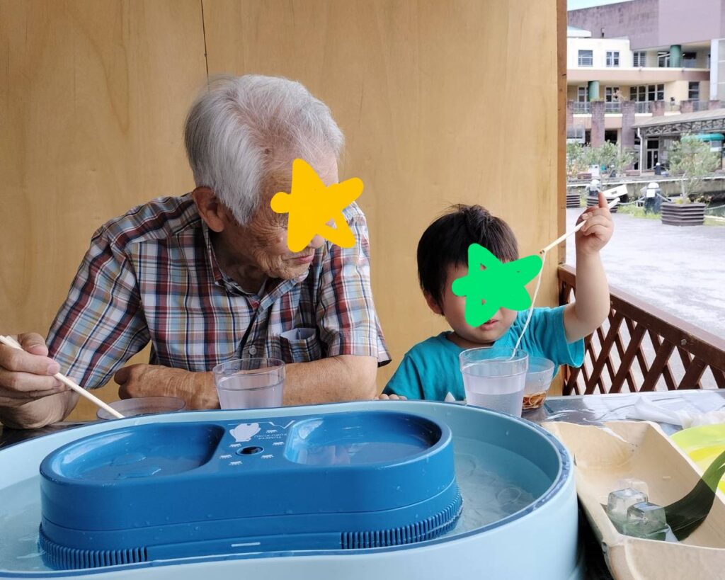 びーちゃん水族館 Uncategorized X Facebook LINE コピー 2025.08.05 今日のびーちゃんはけん爺と一緒に水族館へ(と言う名のベイサイドプレイスの水槽) 長女と3人で行ってきたそうです。 けん爺にべったり。 けん爺もにやけます。 一緒にそうめん流しを食べて 楽しくておかわりもしたし、アイスも食べたみたい。 タワーにも登って (と言ってもベイサイドプレイスの無料のポートタワー)顔出しパネルも。 びーちゃんに誘われ、けん爺真顔😂 帰りにまたじーちゃんちに行って、遊んで楽しい1日だったようです。 帰り損なってわが家にお泊り😂