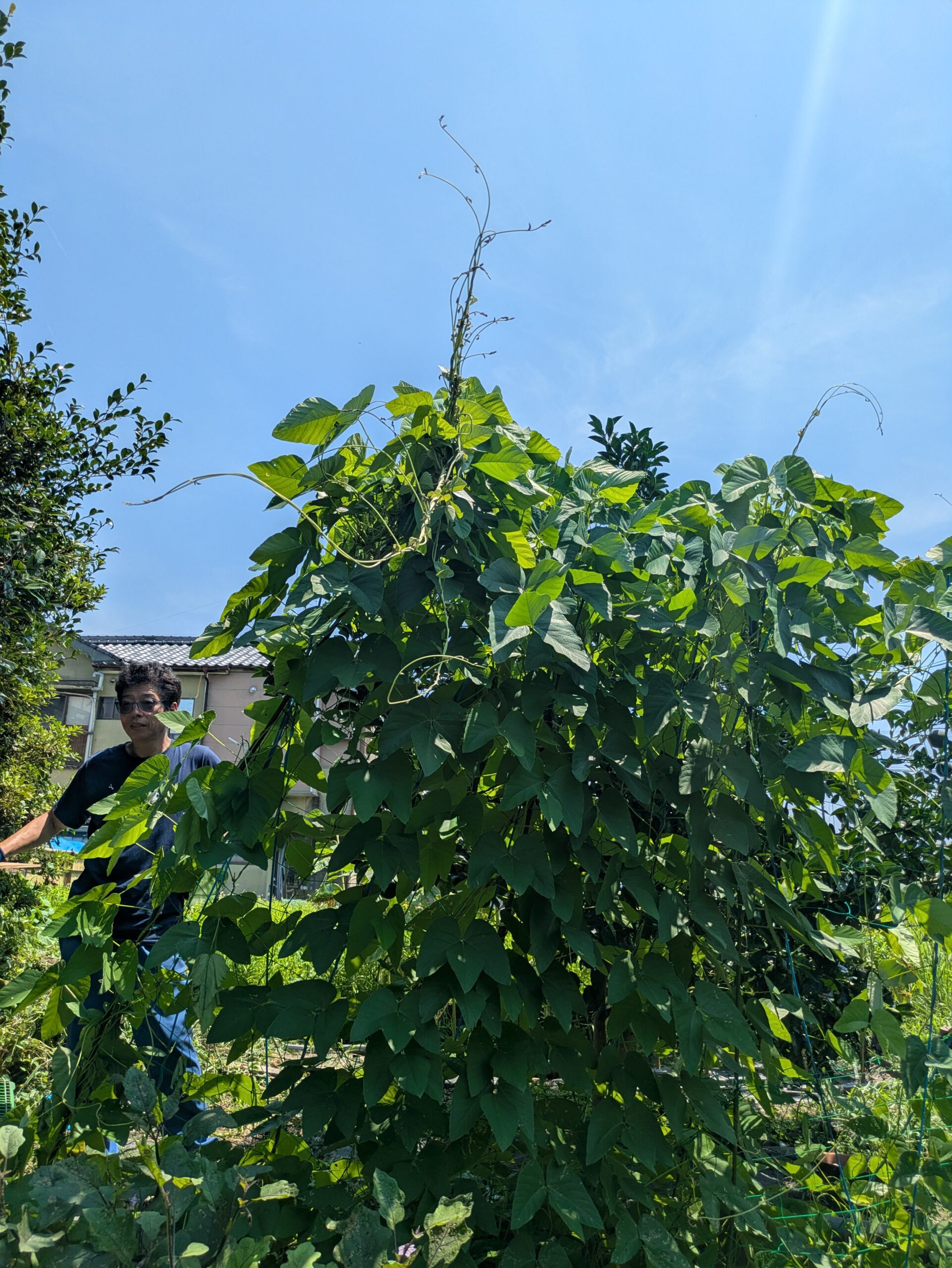 むくな豆 Uncategorized X Facebook LINE コピー 2025.08.21 家のベランダのプランターに植えたむくな豆はひょろひょろーっと成長中 でも!宮崎の地植えのむくな豆はすごいことになっています。 夫の背丈をはるかに越え、壁のようになっていました😂 補強はしてきたけど 台風が来ています。 大丈夫だろうか?? 養蜂箱は大丈夫だろうか? 師匠に尋ねてみよう 庭にはいろいろ自由に咲いています 植えたひまわり、残り少なくなっていたのでひとつ飾ってみました。
