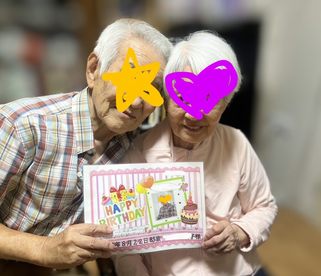 おめでとう Uncategorized X Facebook LINE コピー 2025.08.22 今日は母の誕生日です。 先月まで通っていたデイサービスでは毎年いい笑顔の母の写真を撮ってくださっていました。 今年はあれがないのが寂しいねーって思っていましたが、新しいところでもいただきました。 二女が帰ってくるのを出迎えてくれ、 一緒にお祝いをしてくれました。 ケーキにご機嫌の母 お誕生日おめでとう🎂
