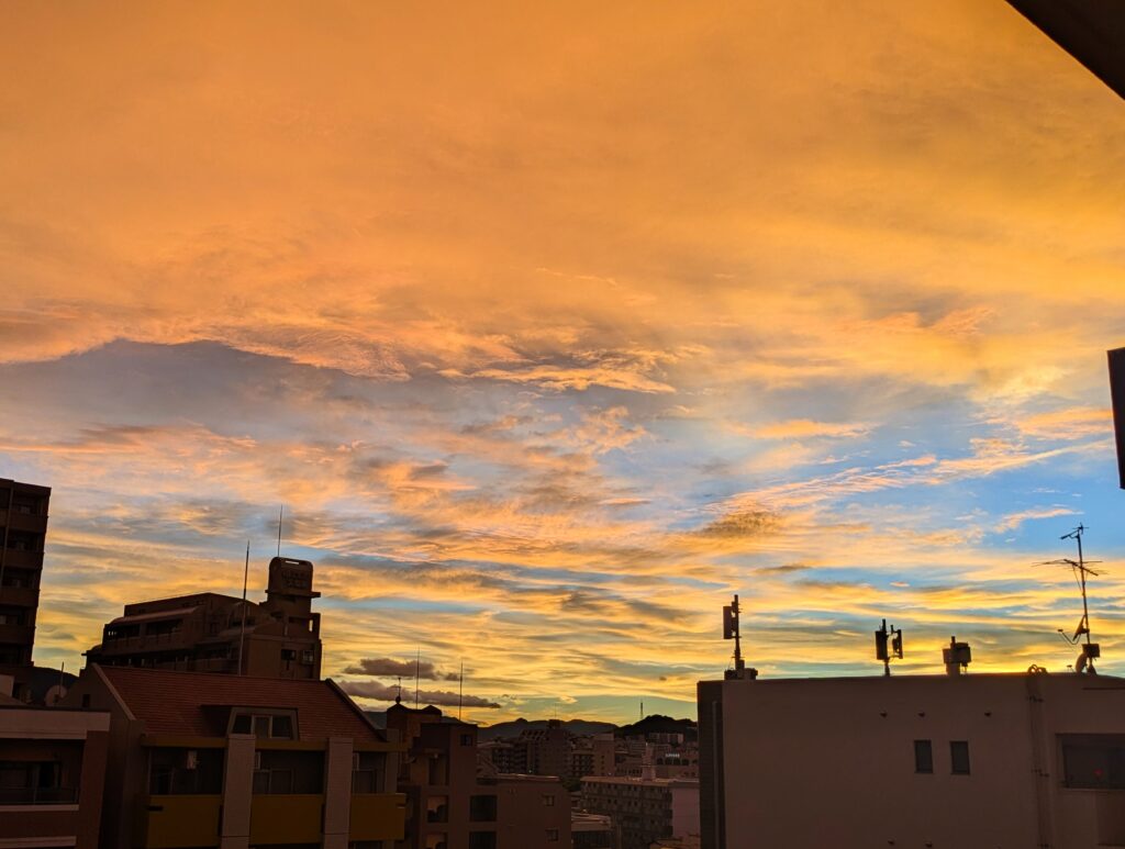 変な雲 Uncategorized X Facebook LINE コピー 2025.09.04 夕方の空は変な雲 伝わらないか? 空が真っ赤でした。 台風の影響かな? 今日は在宅ワーク中、午前中は母がうちへ来ていました。 父が朝から病院で検査だったので 弟が病院へ連れていき、母は午前中うちで留守番 ひとりにできないからね。 なんやかんや1日すごく大変でしたね。 昼からの母の検査もあったけど、 ご機嫌悪くなりキャンセル それからもいろいろと事件勃発で。 でも、結局夜はご機嫌で寝た母なのでした。 まぁよかろう