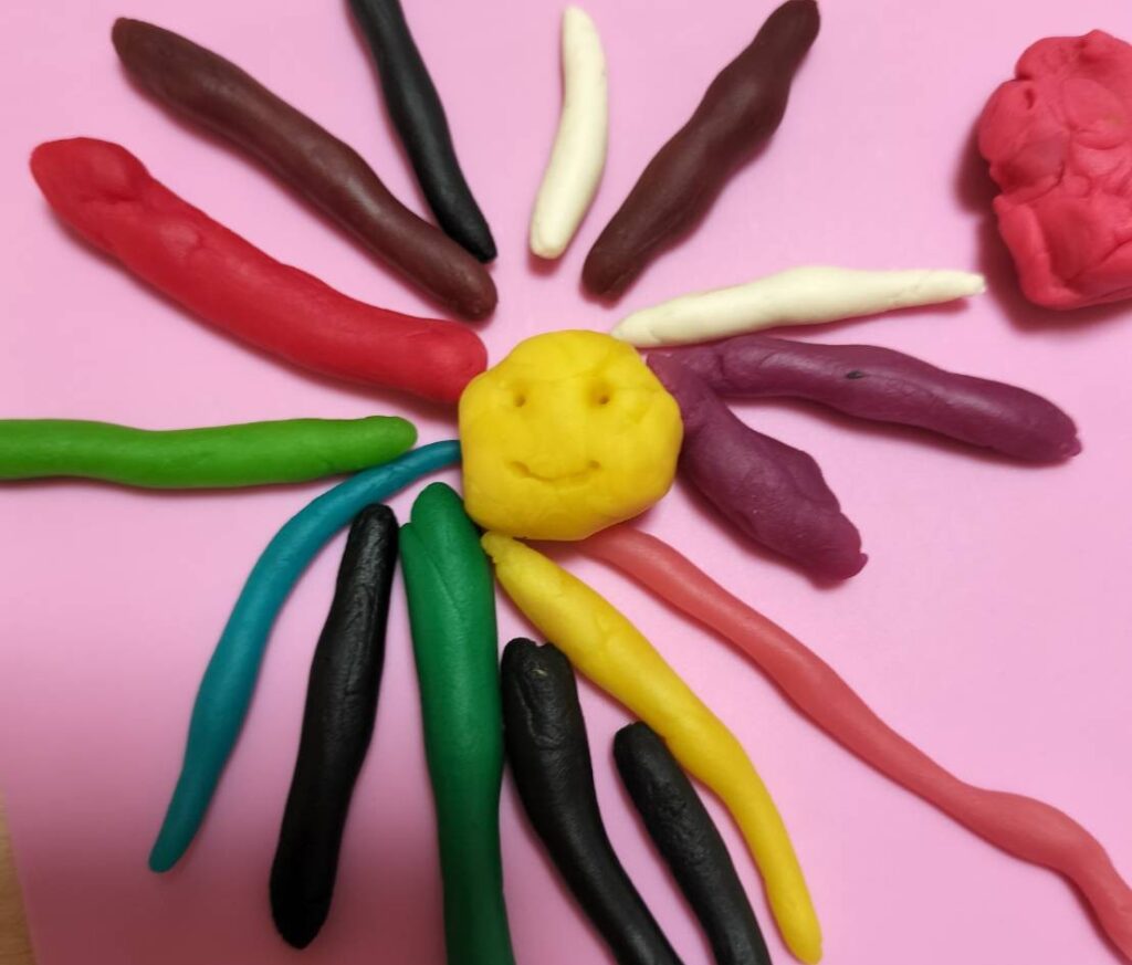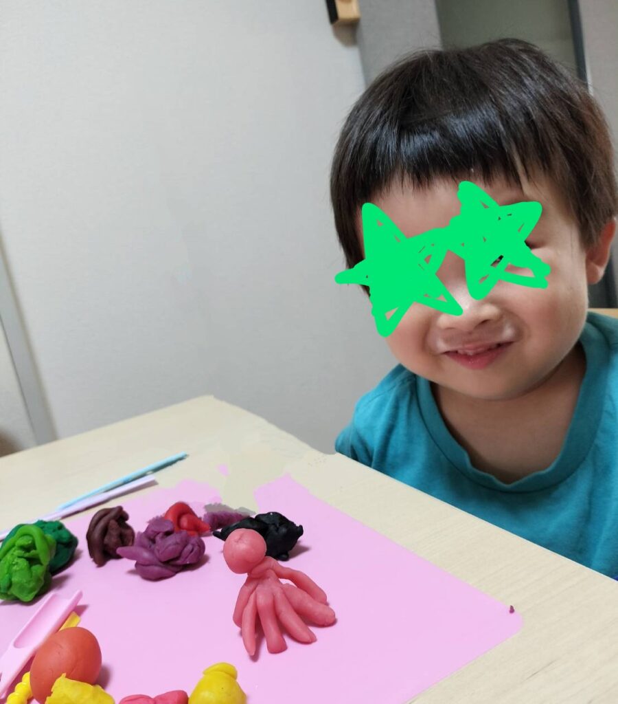 そんなびーちゃんがじっとしておくようにカラフル粘土で長女とふたりで遊んだらしい。