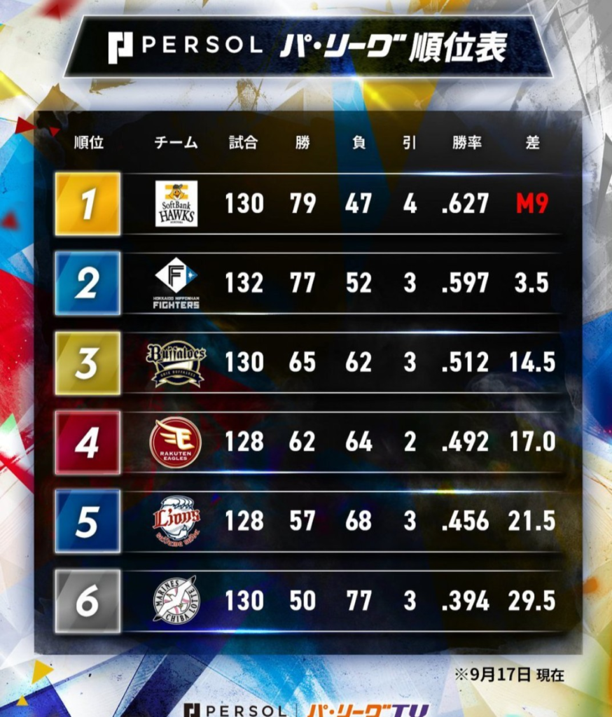 マジック Uncategorized X Facebook LINE コピー 2025.09.17 とうとうホークスの優勝マジック9✨️ 一桁だー。 今年の赤ユニフォームは負け無しです。 このまま勝ち続けたとして 最短22日か? 日ハムも強いのでそううまくはいかないでしょうけど。 楽しみです。 ワクワク 今日は2回3回に大量得点で楽勝かと思いきや 後半結構点を入れられてドキドキでした。 勝ったからいいか!