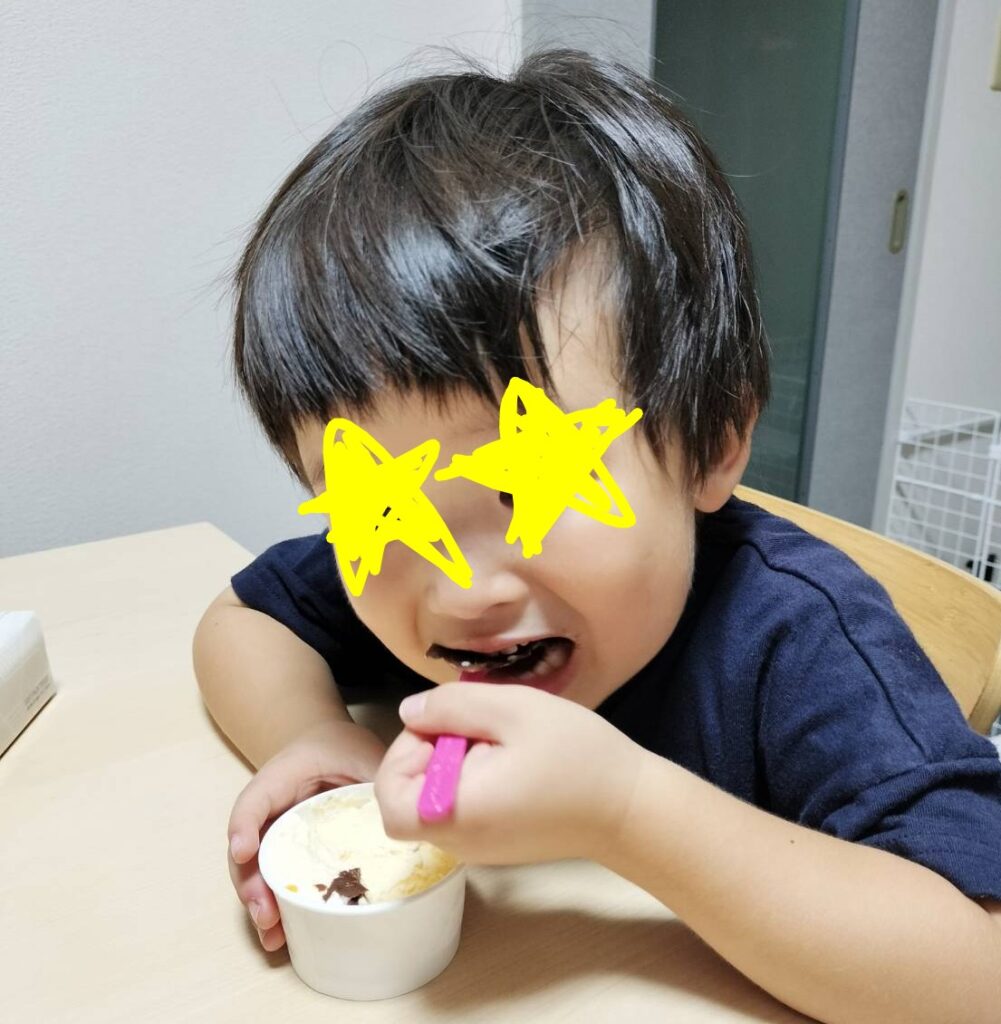 チョコのかかったアイスをゲットして、喜びのびーちゃん。