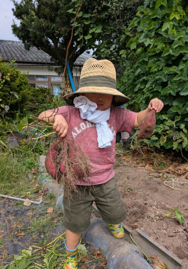 そして、小さいふかし芋にちょうどいいサイズをたくさん見つけて、持って帰ると張り切っていました。