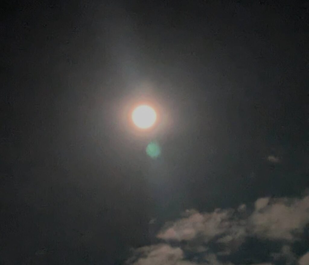 22時くらいからがとてもきれいらしいです。それで今ちょこっと踊り場に出て月を見ていたら