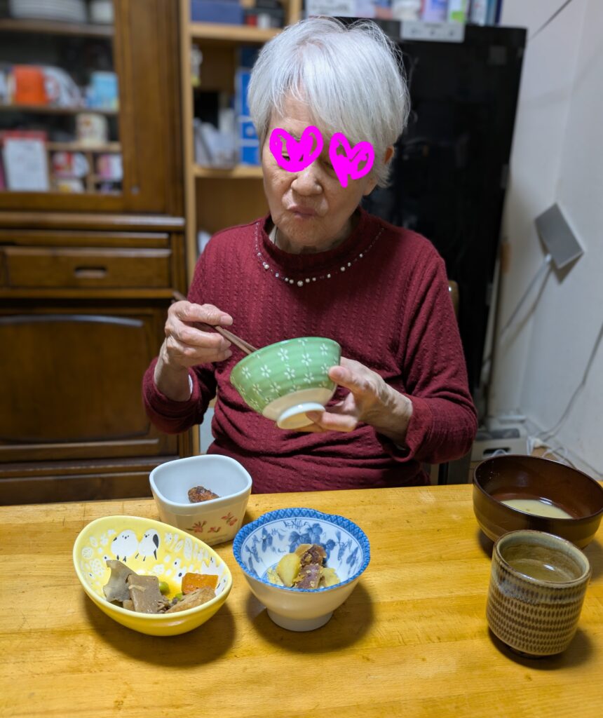 「これはちょっと硬いね」と言いながらお箸で食べていました。