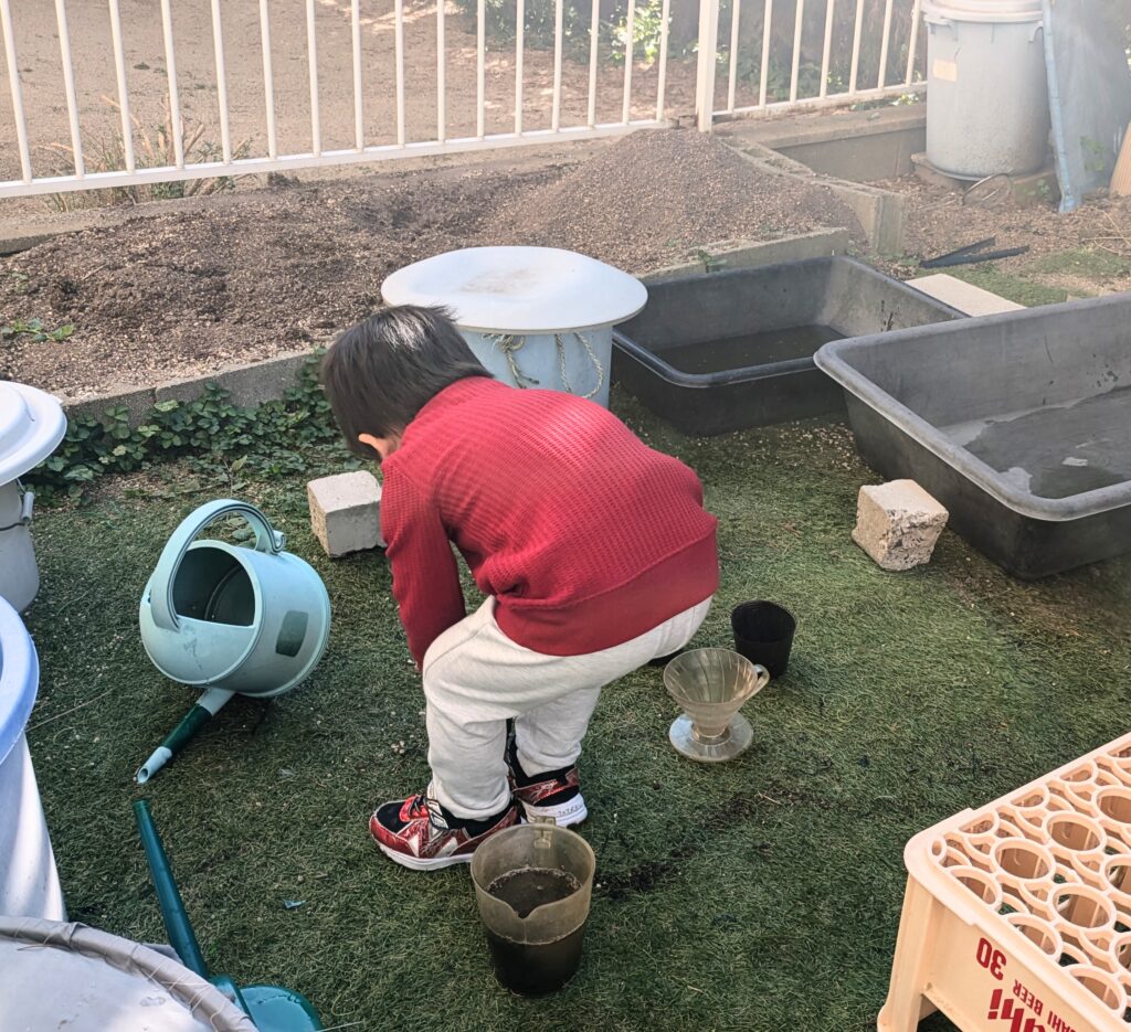 「おっきいじーちゃん(ひいじーちゃん)のところに水やりに行かないといけないから!」と外を見て、まだ真っ暗でがっかりしていました。