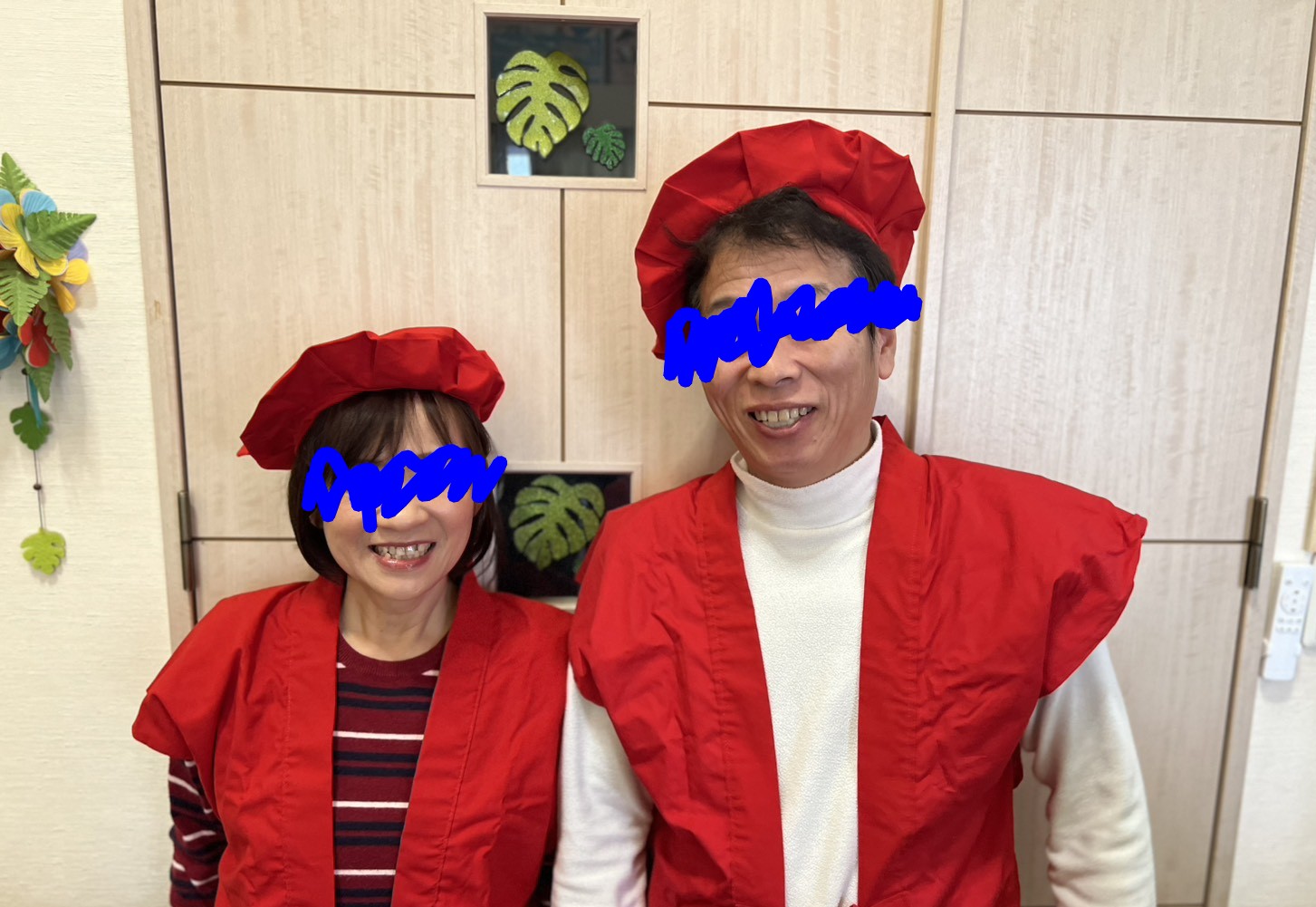 二女夫婦が還暦のちゃんちゃんこを持ってきてくれました。