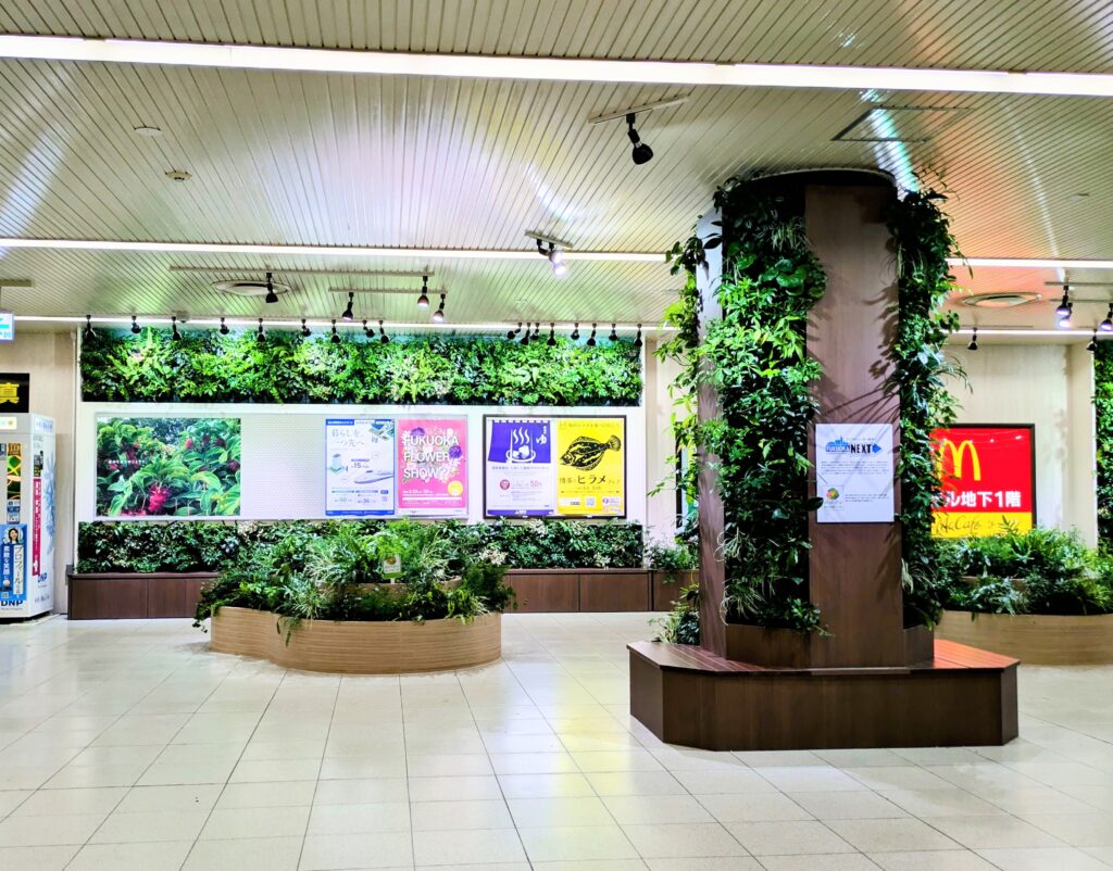 緑プロジェクト Uncategorized X Facebook LINE コピー 2026.03.21 地下鉄博多駅もできてる! 福岡地下鉄 緑プロジェクト 「花と緑があふれるまち」を目指し 行政と民間で連携して始めたとか。 壁面緑化や柱の装飾、休憩用のベンチが設置されて、とても安らぐ空間になっていました。 天神と空港と博多駅だと思います。 あれ?空港2日続けて行ったけど気がつかなかった💦 じゃあまた空港行かねば!😂 あ、天神も! 緑いっぱいで休憩もできて いいプロジェクトだと思います。