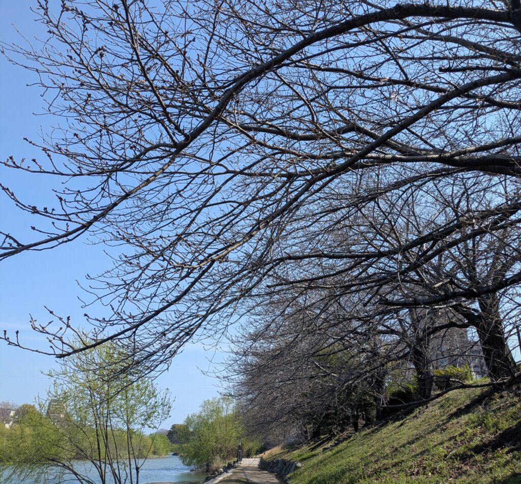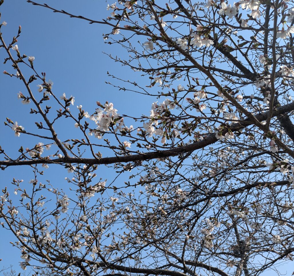 桜の開花具合は? Uncategorized X Facebook LINE コピー 2026.03.26 近所の川沿いの桜の開花具合をチェックに行きました。 まだまだやん? 一本だけ、ちょっと咲いていました。 今年は早い!なんて予報も出ていたのに残念。 4/1頃が福岡は見頃らしいです。 来週末お花見かなー。 でも、このほぼ咲いていないたくさんの桜の木の下で シート敷いてゴロンとなっている人や、おしゃべりしている人たちがいました。 暖かいからね。 日向ぼっこだね。 花見ではない。