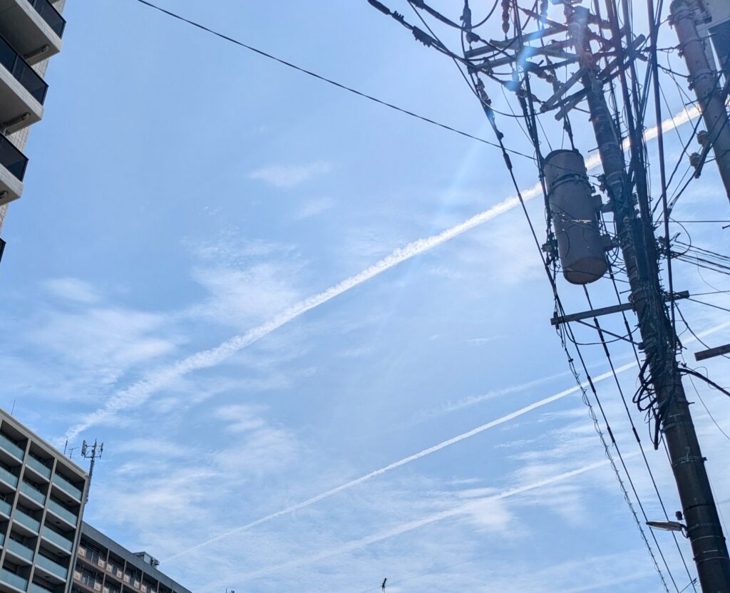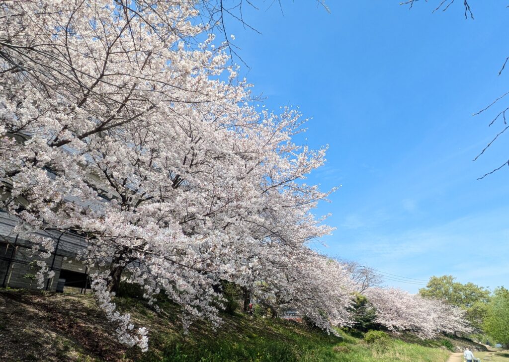 お花見 Uncategorized X Facebook LINE コピー 2026.04.04 1週間遅れで元の職場のいつものメンバーで会社近くの公園でお花見ランチ 数少ないベンチを先に行ってゲットしておきました! 続々やってきていました。 今年も花見できてよかったー。 家の近くの桜並木もほぼ満開 土曜日お花見予定だけど 雨模様 ひこうき雲3本! やっぱり花見は難しいだろうなー。