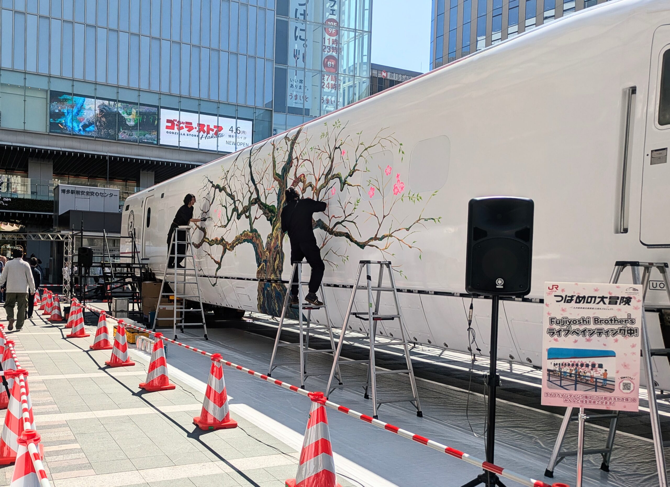 姪とランチ Uncategorized X Facebook LINE コピー 2026.04.08 姪っ子の誕生日祝いに毎年ランチしています。 今年はブッフェ✨️ 楽しかった! 平日限定で、いままでは平日のランチはなかなかできなかったけど、 お得情報満載ですね。 ランチに行く前の博多駅 ニュースになっている新幹線つばめ 壁面に絵を描いているところを たくさんの見物客がシャッター押していました。 そしてランチから戻ってきたら 作品がかなり、進んでいました。 桜のオブジェもたくさんありました。 出来上がりをまた見に行こう!