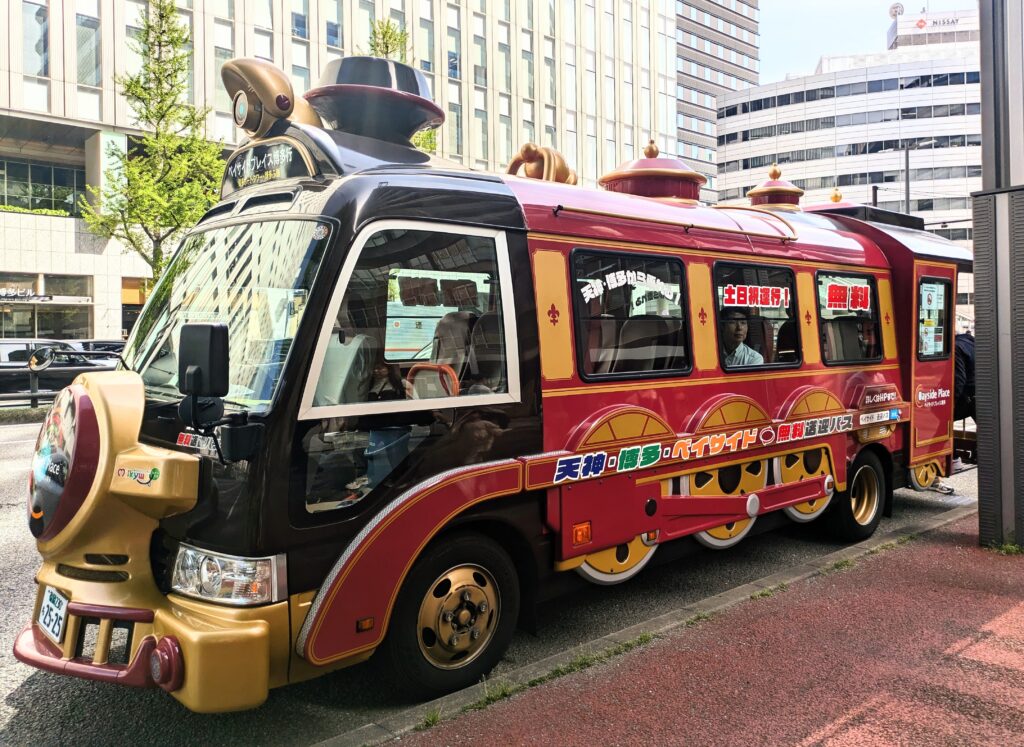 ベイサイドプレイスへ Uncategorized X Facebook LINE コピー 2026.04.11 お泊りしたびーちゃんと、父と妹と私の4人でバスに乗ってベイサイドプレイスへ。 お天気がよく、お弁当買って食べて、ぶらぶら歩いて遊んで、水槽の魚に夢中になりました。 そして、先週、博多駅で見かけたかわいい車が、ベイサイド↔博多駅、天神のコースを走る無料バスだとわかり、これは乗りたい! というわけで、無事乗ってきました。 土日のみ運行しています。 幼稚園バスみたいですね。 かわいくて走ると目立つので、 みんなが振り向きました💦 びーちゃんと一緒じゃないと乗りにくいね💦