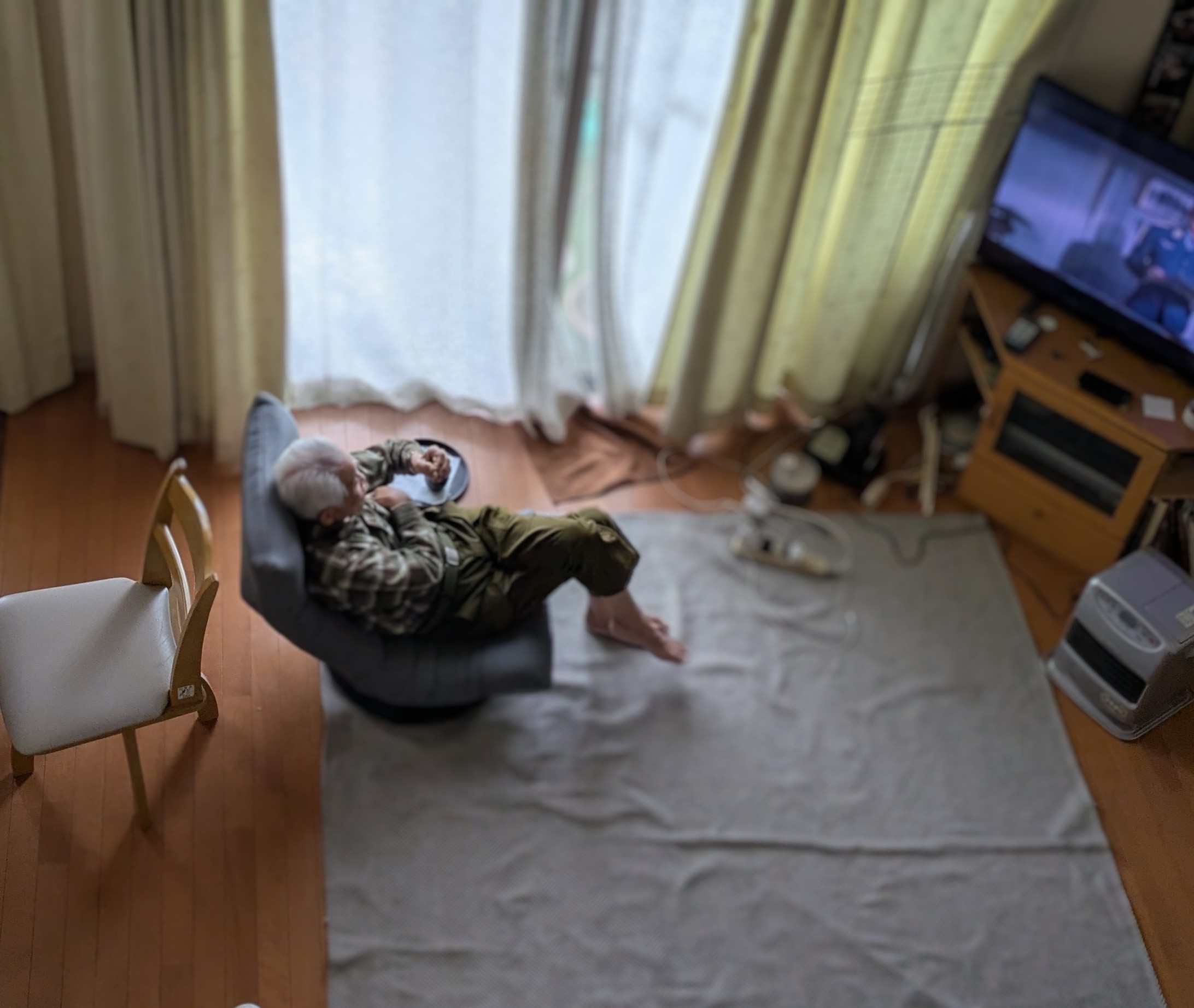 雨の1日 Uncategorized X Facebook LINE コピー 2026.04.14 昼前から雨…… 私はなんだか目眩がひどく、 ゴロゴロ。 父も暇そうにしていました。 暇なので、いろいろやらかし← お昼ご飯を食べ また暇そう💦 というわけで、古い映画をつけてあげたら、喜んで観ていました。 3時間の映画 お茶とお茶菓子を横に置いて 長時間同じ体制で座って お尻が痛くなったーと言っていました。 そりゃそーだ💦